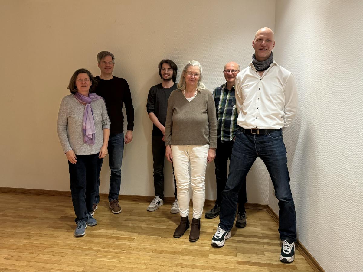 MBSR-Trainer Frank Cibulski im Kreise der noch verbliebenen Teilnehmenden der von der SHG Frankfurt organisierten MBSR-Einführungsstunde. Foto © Ronald Wagner